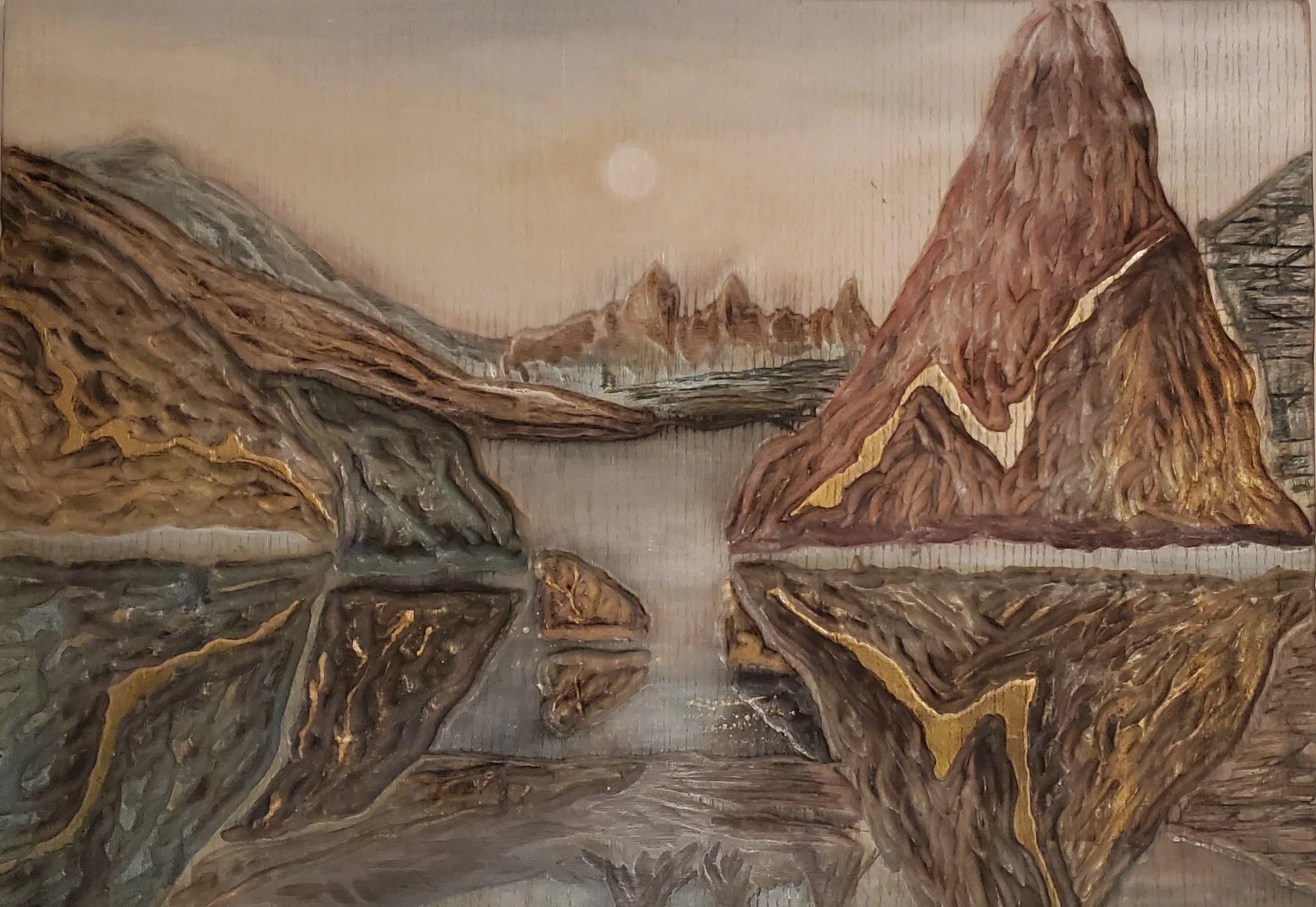 Wood Carving/Acrylic/Shou Sugi Ban/Pyrography